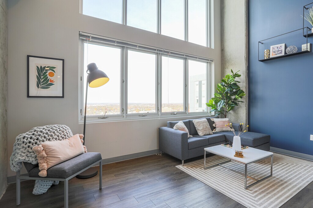 - Fully Furnished with Gus: Modern Couch, Coffee Table, Bar Stools, Desk Chairs