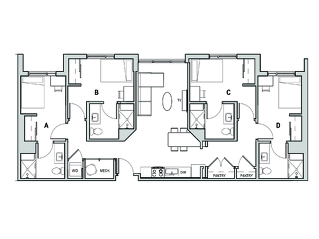 2x2 Penthouse - Floorplan 2 4 Bedrooms