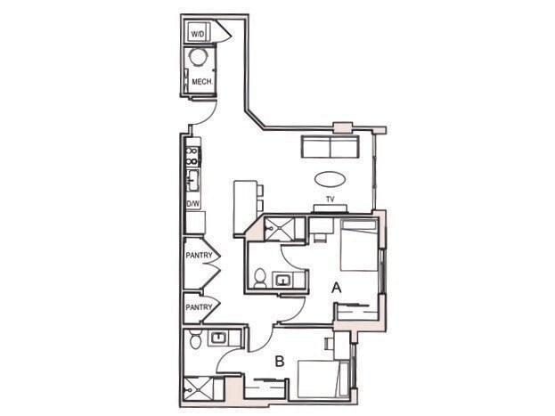 Apartment Model: 2x22 Bedroom, 2 Bath, 757 sq ftUnavailable![]()