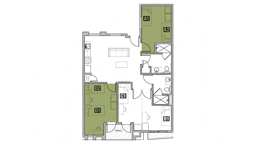 Apartment Model: 4x24 Bedroom, 2 Bath, 1068 sq ftUnavailable![]()