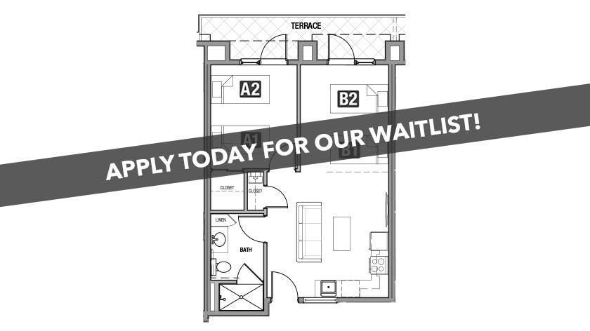 Apartment Model: 2x22 Bedroom, 2 Bath, 708 sq ftUnavailable![]()
