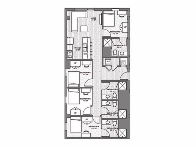 2x2 Terrace - Graduate - Floorplan 4 ![]()