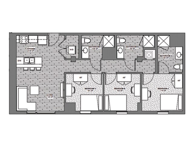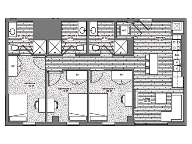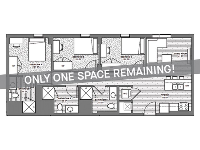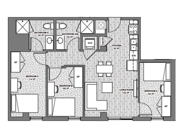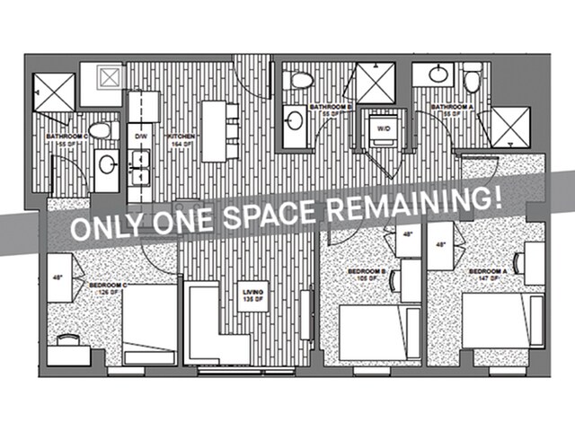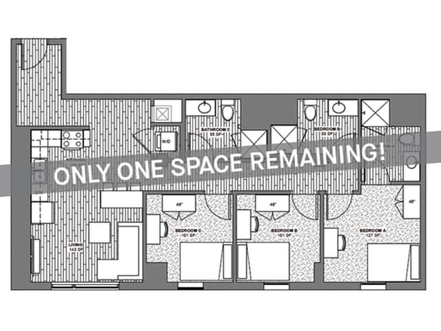 Apartment Model: 3x2 Terrace - Graduate3 Bedroom, 2 Bath, 670-712 sq ftUnavailable![]()