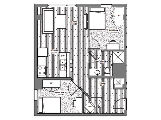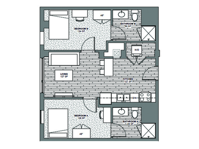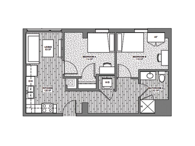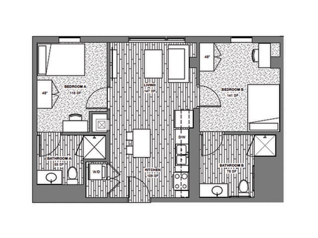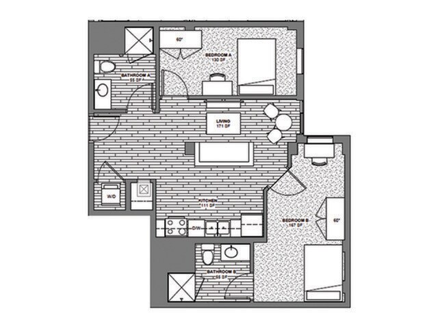 2 Beds, 2 Baths, 569-707 sq ftLargest 2 BedroomThis is the largest 2 Bedroom at this PropertyModel Gallery