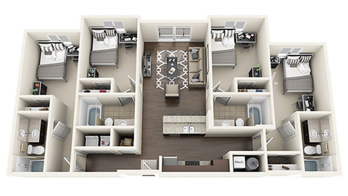 1 Bedroom to 4 Bedroom Apartments at Student | University Park currently range from $1,459 to $2,199