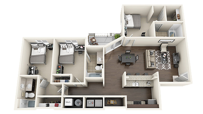 Price Availability Date Unit Sq Ft View Details $1,809/person Available Now 3x3 A 1242 $1,829/person Available Now 3x3 A - Interior View 1242 $1,804/person Available Now 3x3 C 1242 Model Amenities and Features