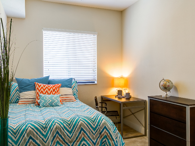 Located less than a half-mile from Florida Atlantic University, University Park is the premier location for off-campus student housing near FAU. Walk to class or take the property shuttle from the clubhouse. Have a car? Parking is available for a small fee, and the community is gated. Our 2, 3 and 4 bedroom suites offer private bedrooms and bathrooms, large closets and a spacious shared common area. All units are fully furnished with a modern furniture package as well as all major appliances (washer, dryer, refrigerator, stove, microwave, dishwasher). Contact us today to learn more about living at University Park.