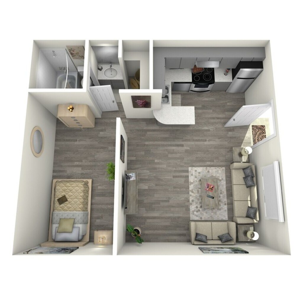 Apartment Model: Small Studio DeluxeFrom $999Studio, 1 Bath, 350 sq ftAvailable NowFloorplansPhotos![]()