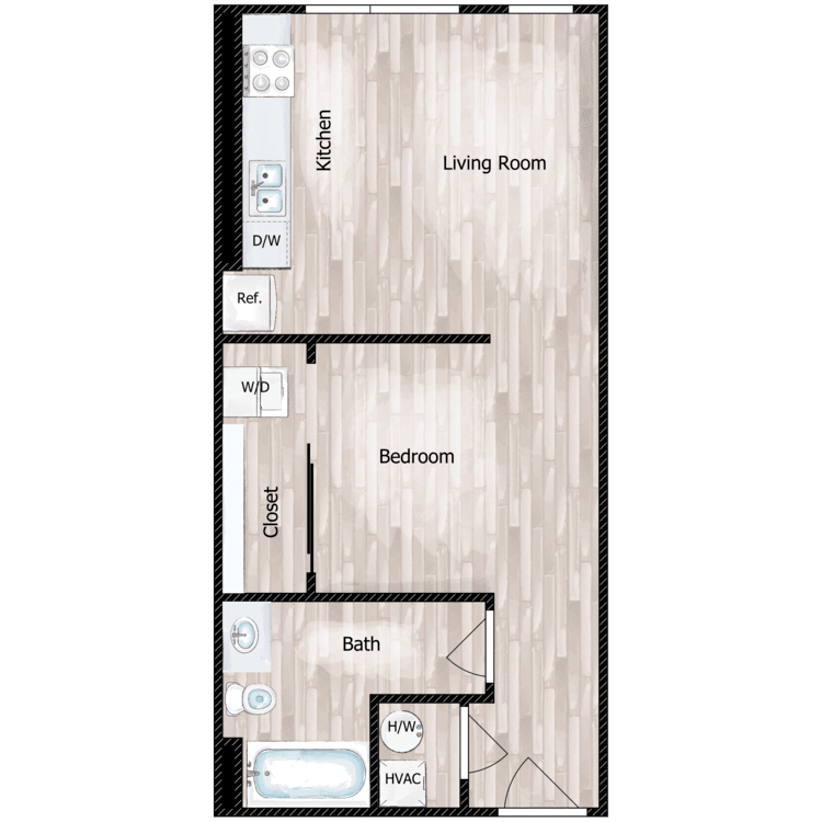 Apartment Model: ShelbyCall For RatesStudio, 1 Bath, 500 sq ftUnavailable![]()