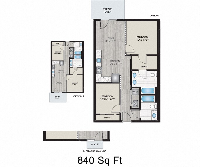 - Studio–2 Bedrooms
