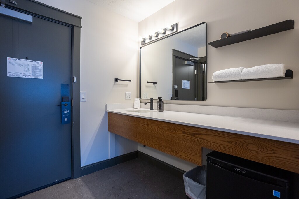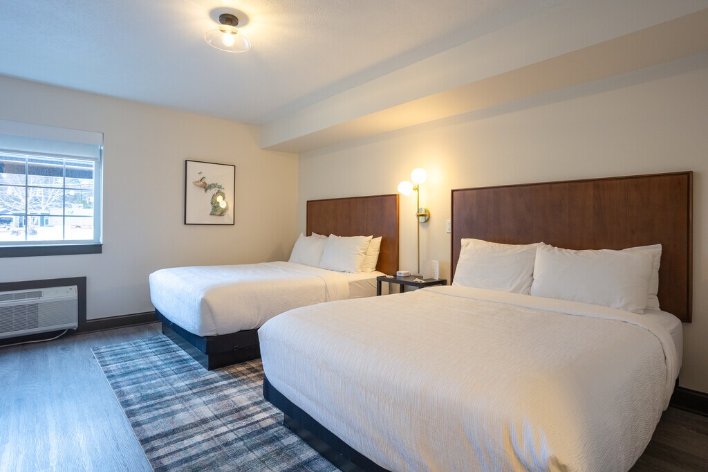 November to May Off Season Monthly Studio room rentals. Experience The Vic, where modern comfort meets rustic charm just steps from Grand Traverse Bay and minutes from NMC, downtown's shops, restaurants, and breweries. Our beautifully renovated building offers thoughtfully designed rooms, one complimentary parking space per unit, use of the fitness center, community room, and an on-site laundry room. 24/7 guest support by text, on-site and virtual Front Desk services. Single King and Double Queen studio rooms available. In room coffee maker, microwave and mini-fridge, with available hot plate. $100 Utility fee includes all utilities, wi-fi, Clean towels and sheets weekly with weekly light cleaning included.