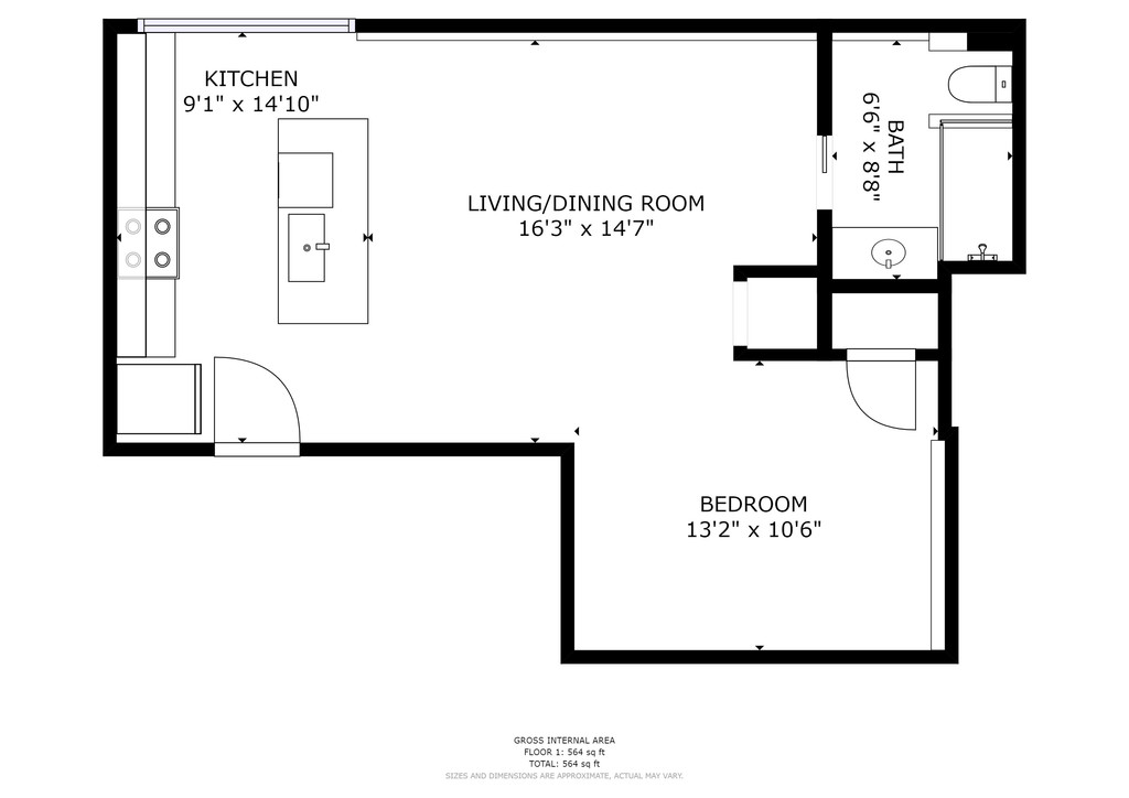 1 Bed, 1 Bath, 642-686 sq ftLargest 1 BedroomThis is the largest 1 Bedroom at this PropertyModel Gallery