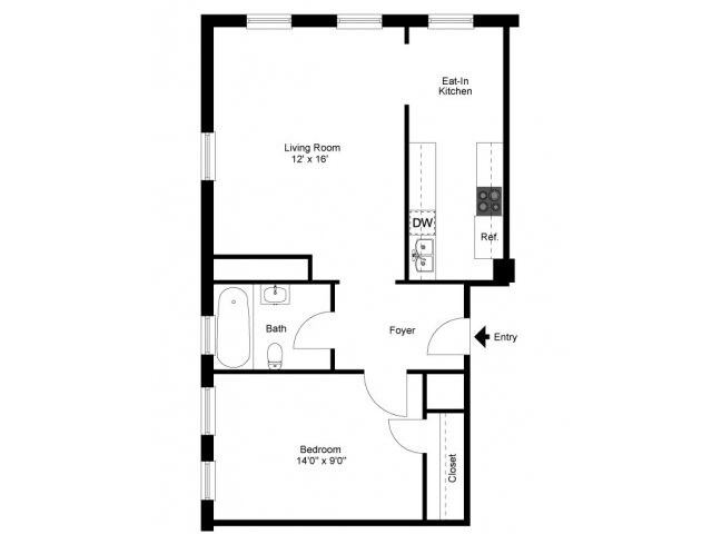 One Bedroom Large - Floorplan 3 Apartment Unit: 116Apartment Model: One Bedroom Large$1,6971 Bedroom, 1 Bath, 555 sq ftAvailable December 10, 2025One Bedroom