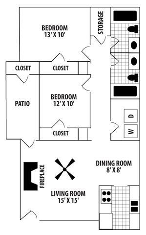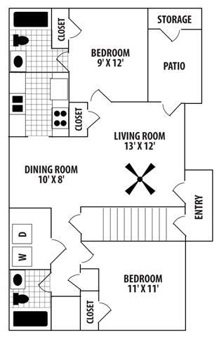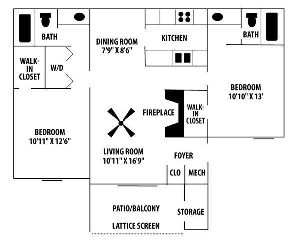 2 Beds, 2 Baths, 1010 sq ftLargest 2 BedroomThis is the largest 2 Bedroom at this PropertyModel Gallery