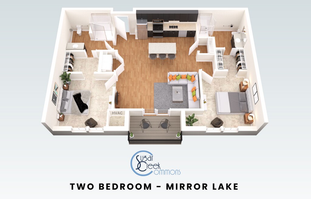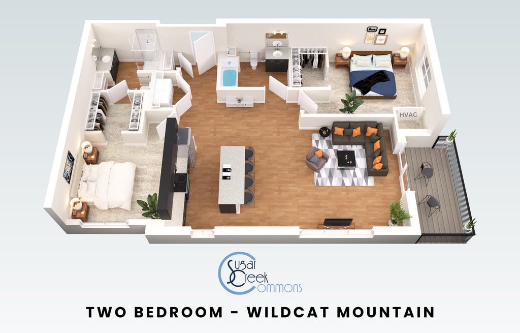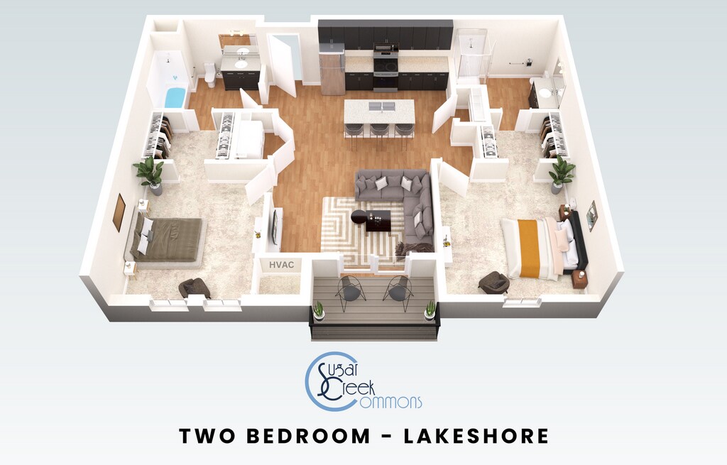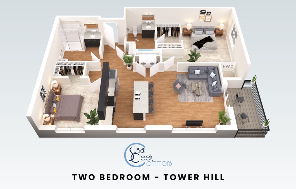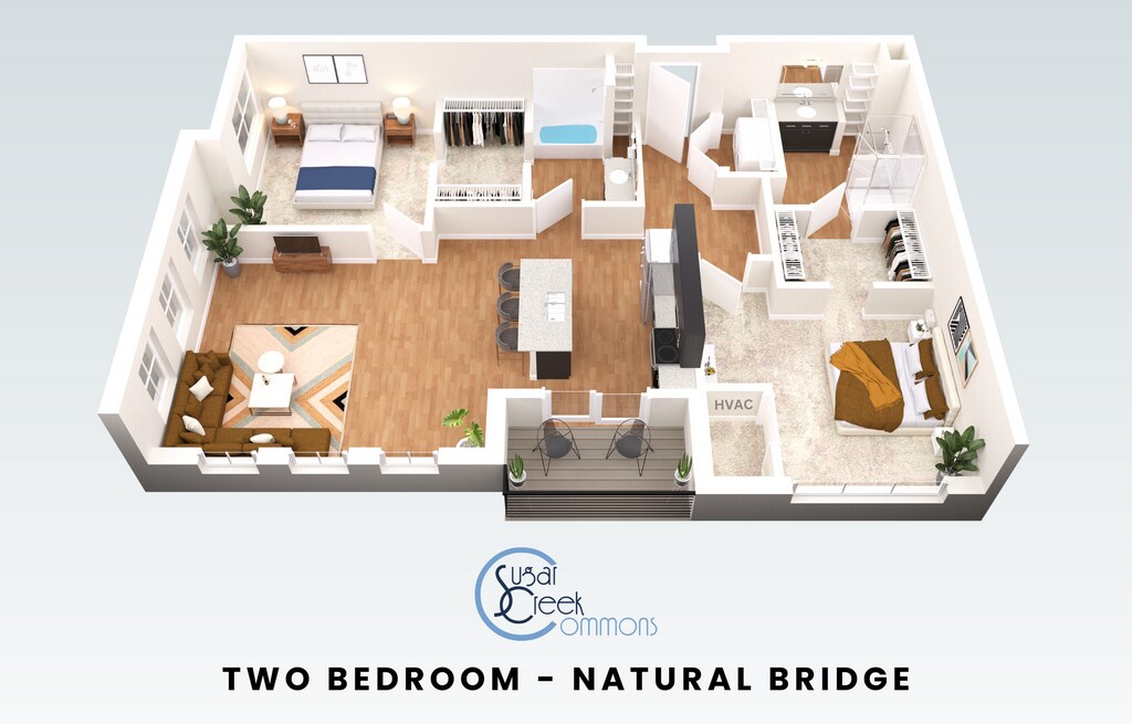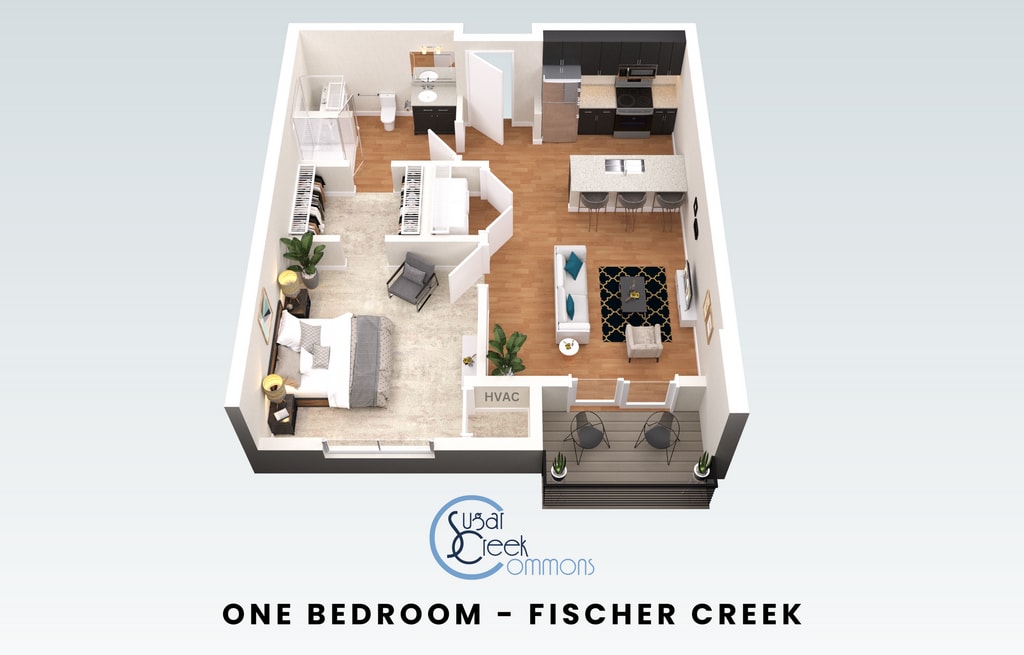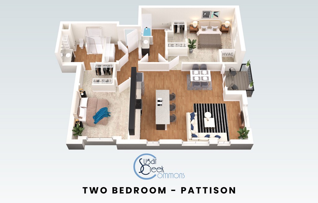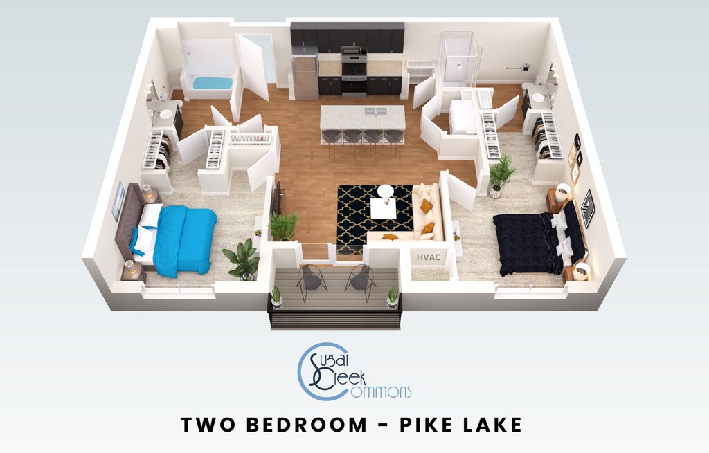 Studio to 2 Bedroom Apartments at Sugar Creek Commons currently range from $1,749 to $2,399