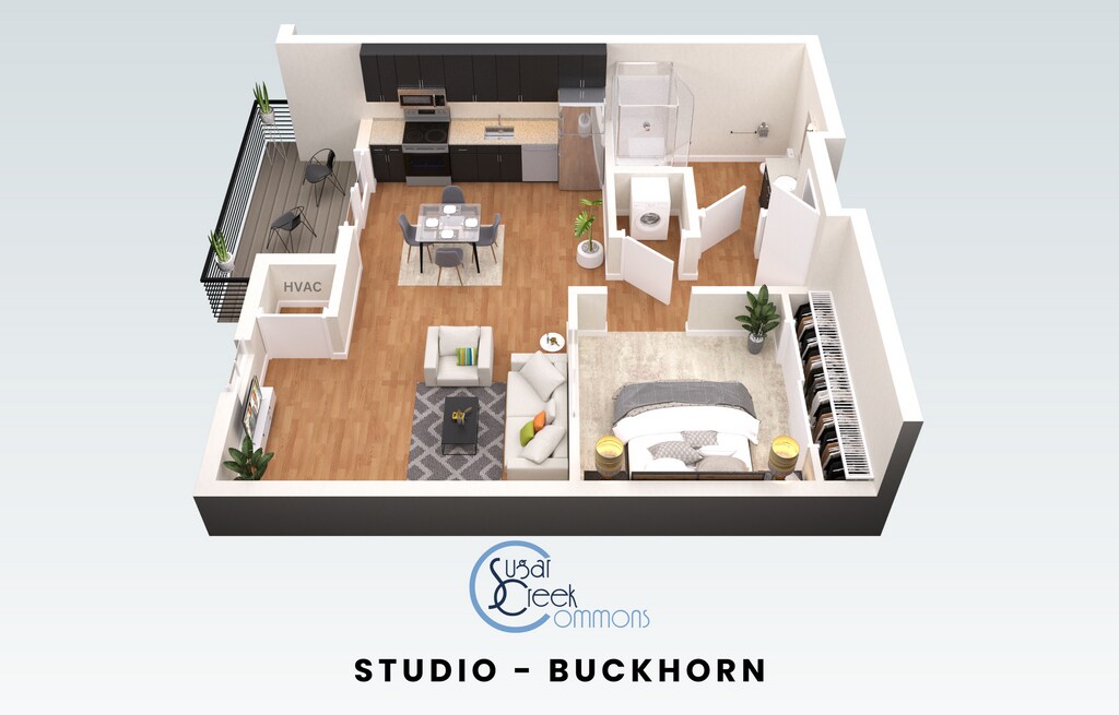 Apartment Model: BuckhornCall For RatesStudio, 1 Bath, 626 sq ftUnavailable![]()