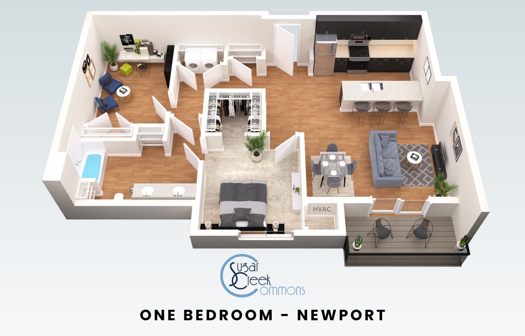 1 Bed, 1 Bath, 765 sq ftAvailable NowModel Gallery