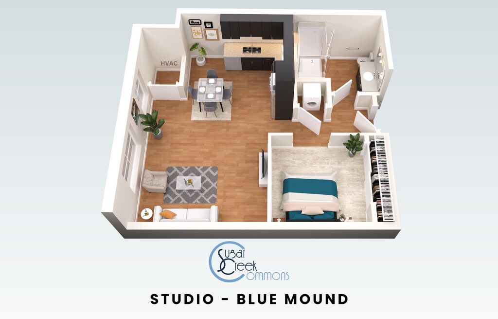 Apartment Model: Blue MoundCall For RatesStudio, 1 Bath, 626 sq ftUnavailable![]()