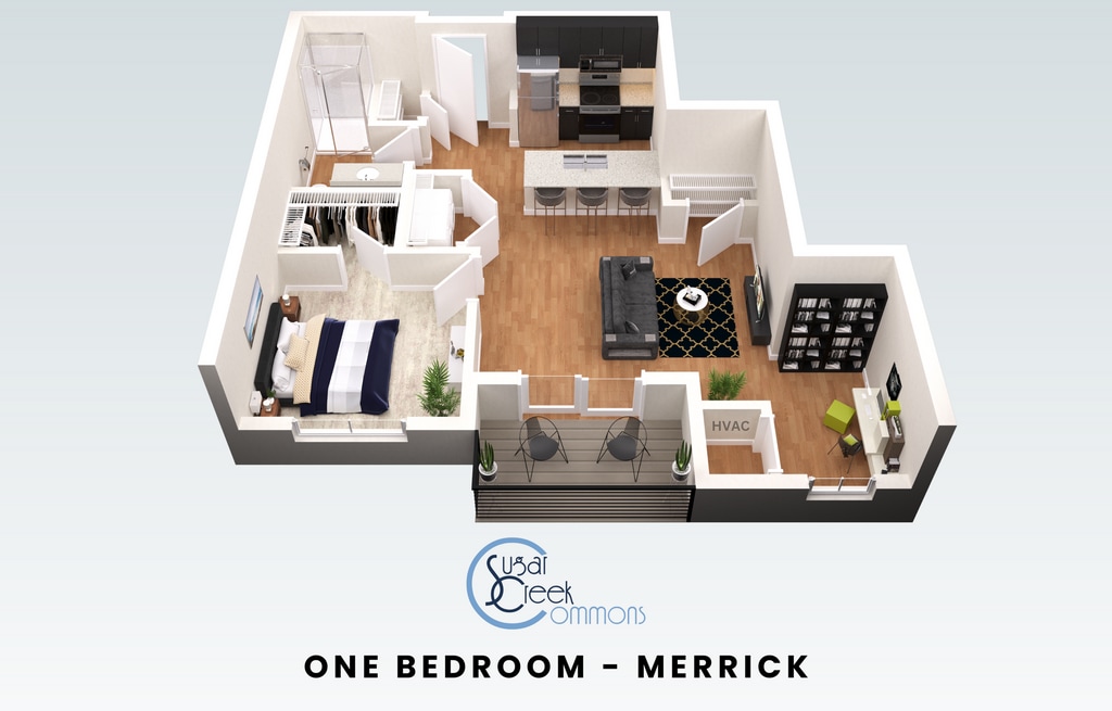 Heritage Hill - Floorplan 2 Apartment Unit: 509-316Apartment Model: Heritage Hill$1,7491 Bedroom, 1 Bath, 926 sq ftAvailable NowMerrick
