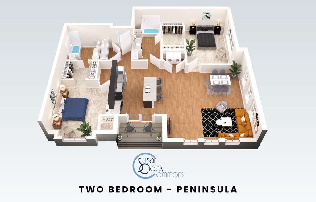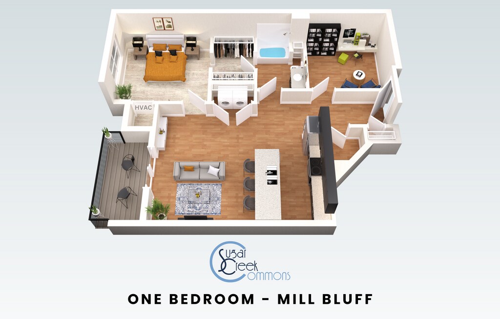Sugar Creek Commons offers Studio to 2 Bedroom apartments starting from $1,749 and having 609–1,452 sq ft. Here is the current pricing and availability: