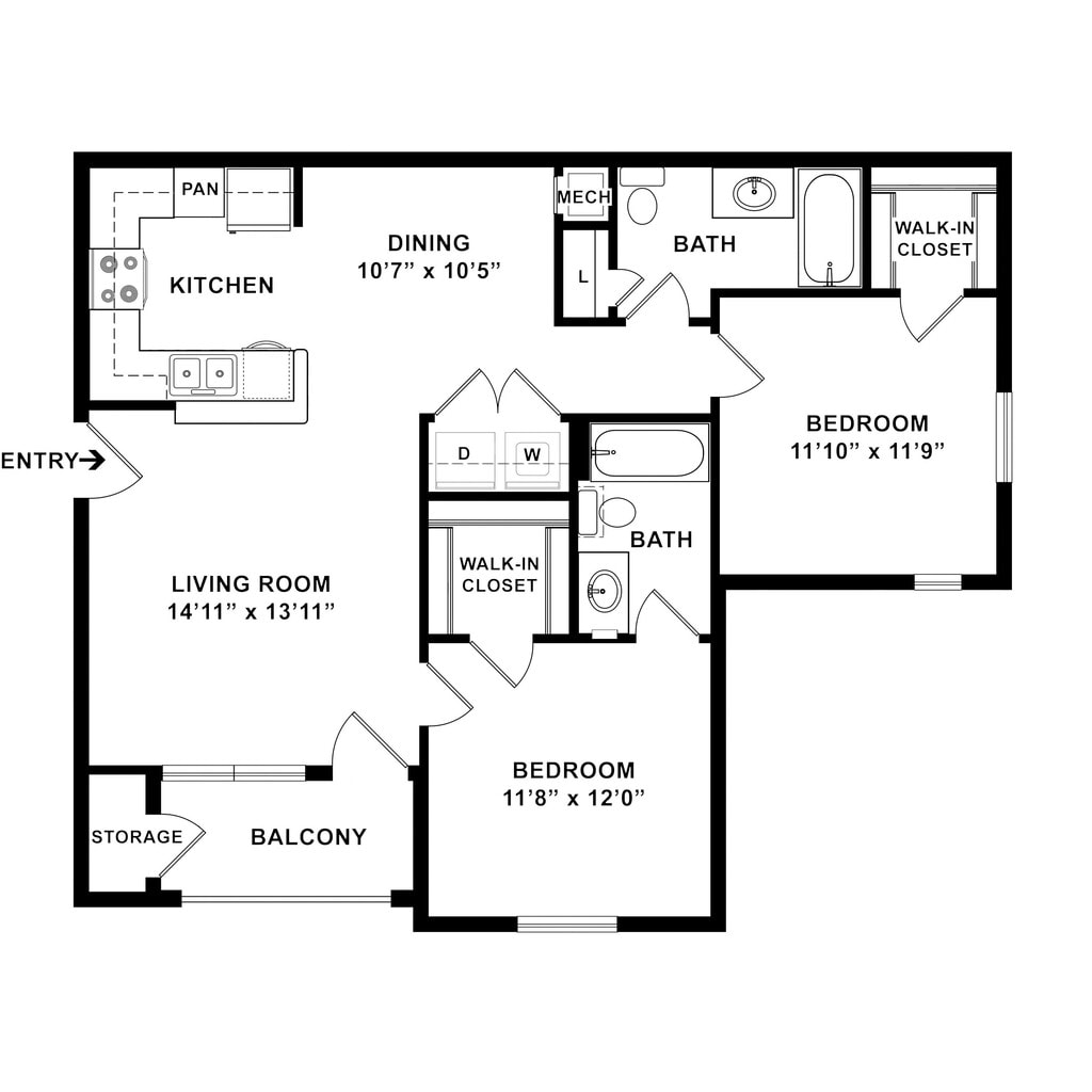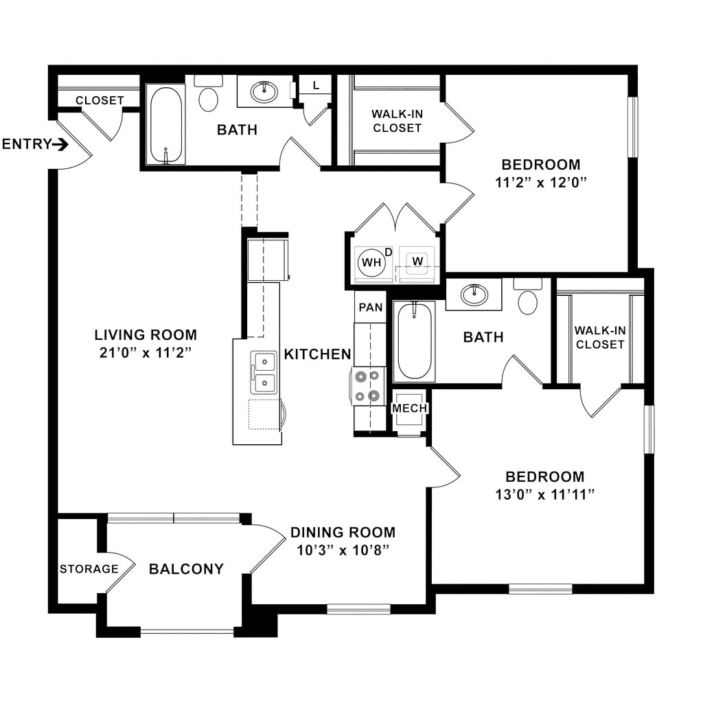 2 Beds, 2 Baths, 1107 sq ftAvailable NowModel Gallery