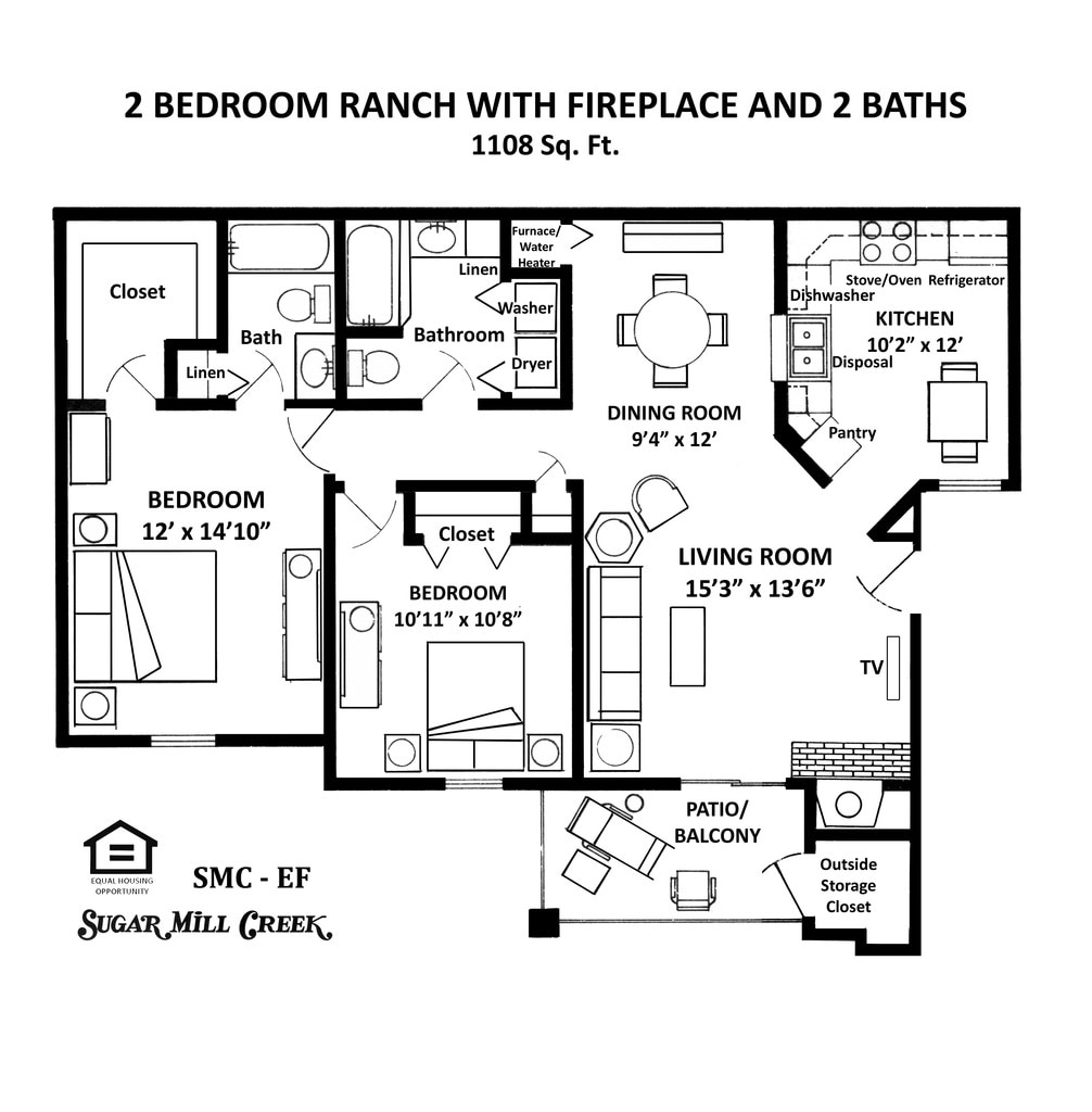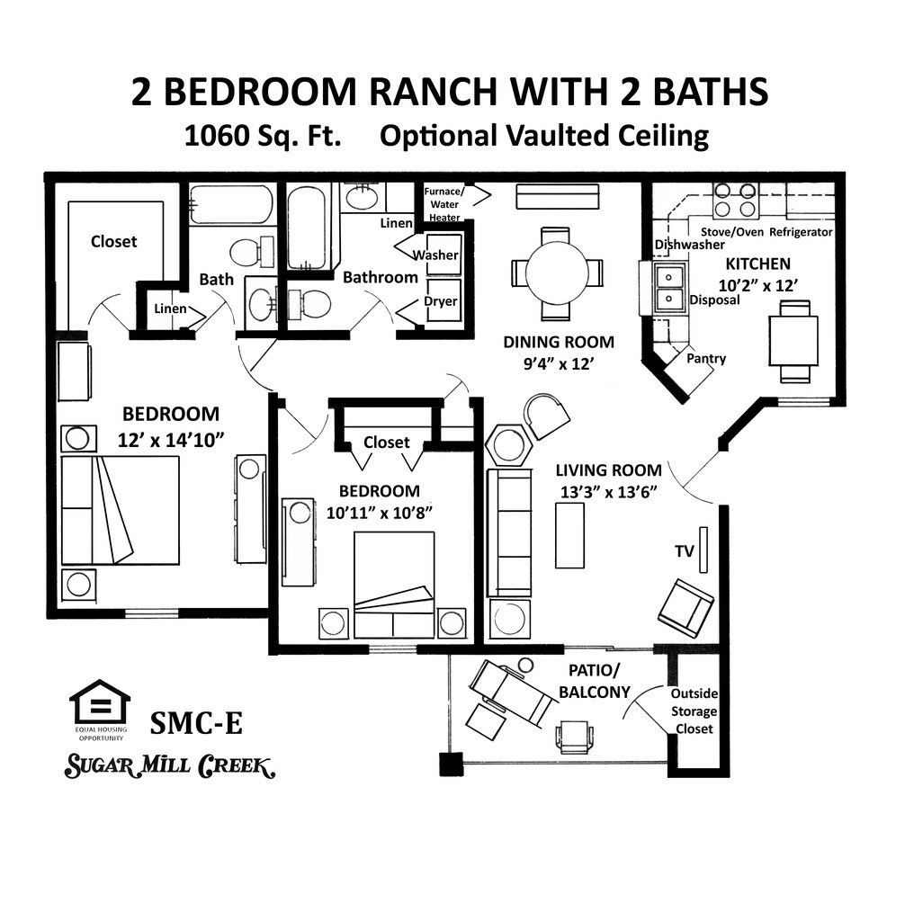 E-2 Bedroom Ranch w/2 Baths - Floorplan 1 EF-2 Bedroom/2Baths w