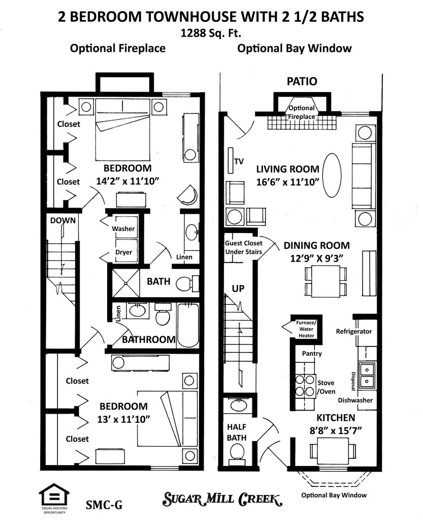 DF-2 Bedroom/1Bath w/Fireplace - Floorplan 1 E-2 Bedroom Ranch w/2 Baths