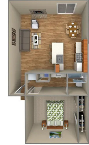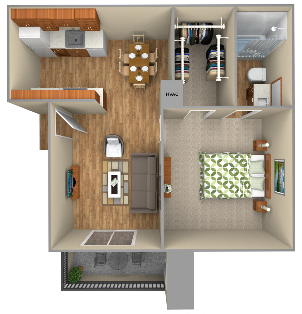 Apartment Model: 1A- LI/VL$7201 Bedroom, 1 Bath, 540 sq ftAvailable Now![]()