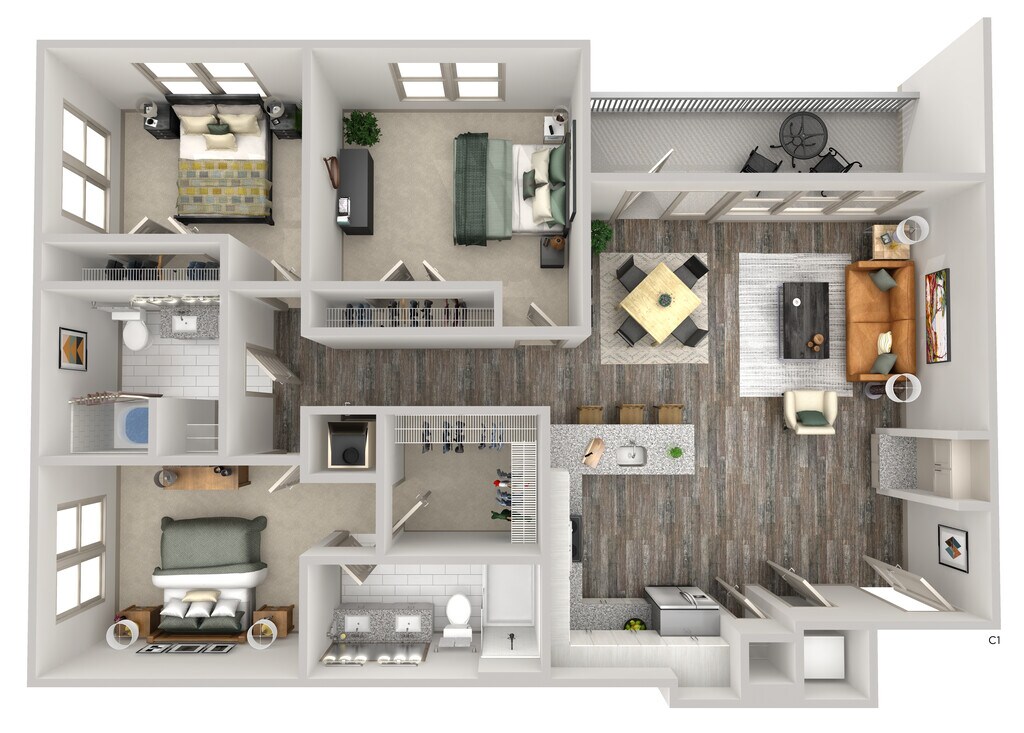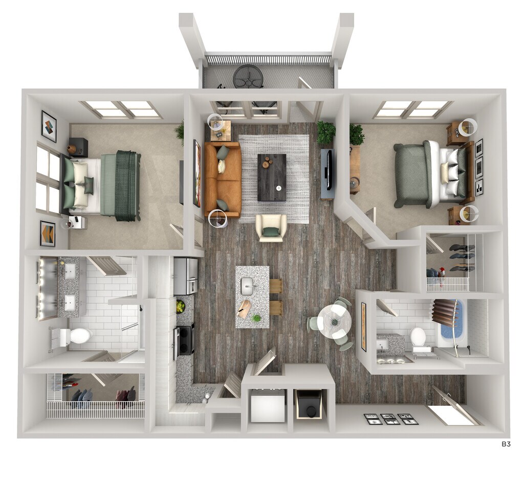 grvC1 - Floorplan 1 Apartment Unit: 1428Apartment Model: grvC13 Bedroom, 2 Bath, 1380 sq ftAvailable Now