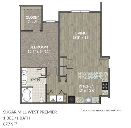 1 Bed, 1 Bath, 877 sq ftLargest 1 BedroomThis is the largest 1 Bedroom at this PropertyModel Gallery
