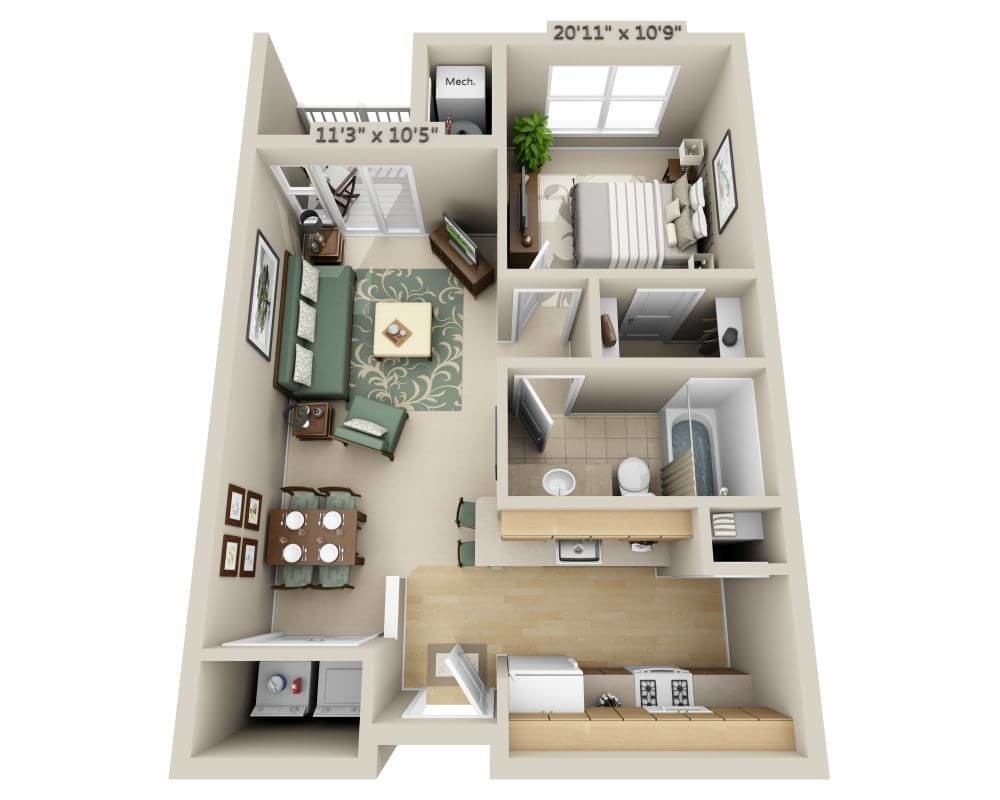Studio, 1 Bath, 634-655 sq ftModel Gallery