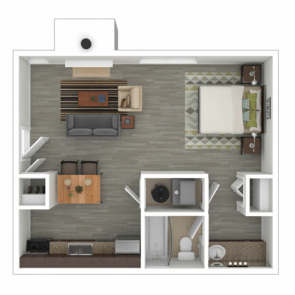 Apartment Model: S1 Affordable$1,047Studio, 1 Bath, 542 sq ftAvailable NowFloor plans are artist's rendering. All dimensions are approximate. Actual product and specifications may vary in dimension or detail. Not all features are available in every rental home. Prices and availability are subject to change. Base rent is based on monthly frequency. Additional fees may apply, such as but not limited to package delivery, trash, water, amenities, etc. Deposits vary. Please see a representative for details.
