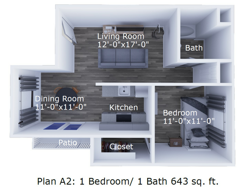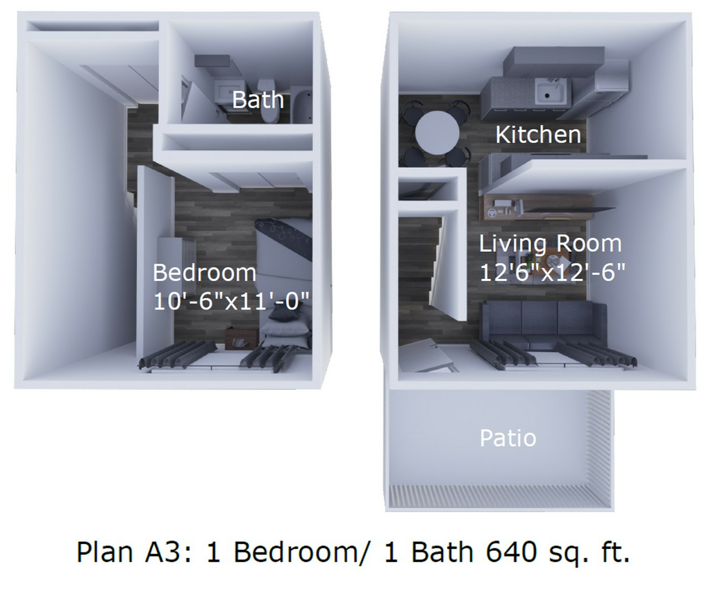 One bed one bath Townhome - Floorplan 1 Apartment Unit: 145Apartment Model: One bed one bath Townhome1 Bedroom, 1 Bath, 640 sq ftAvailable November 8, 2025Apartment Unit: 117Apartment Model: One bed one bath Townhome1 Bedroom, 1 Bath, 640 sq ftAvailable November 22, 2025Updated one bed one bath