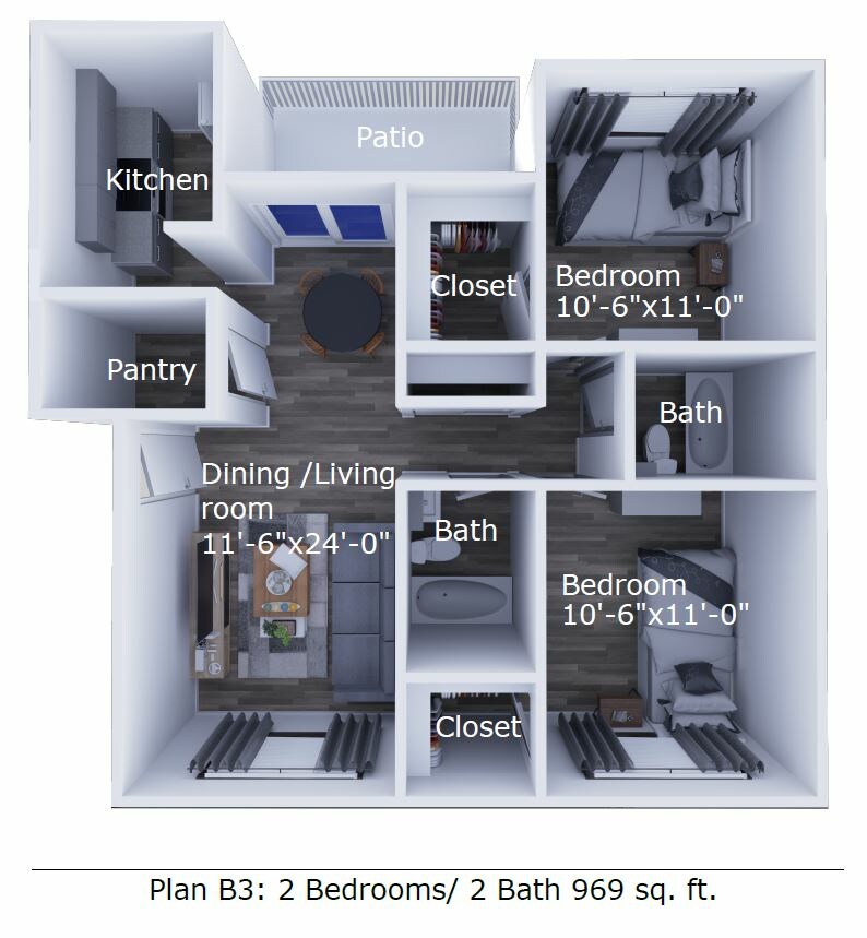 Availability Date Unit Sq Ft Unavailable Two bed two bath 969 sq ft Apartment Model: Two bed two bath2 Bedroom, 2 Bath, 969 sq ftUnavailable![]()