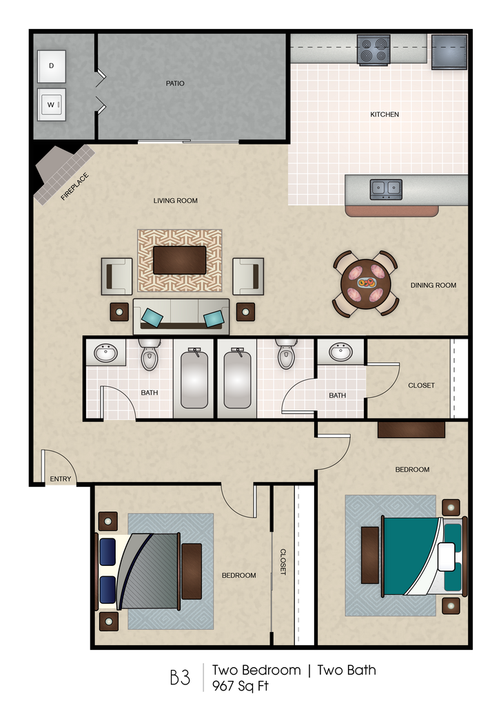 Apartment Model: Two bedroom/Two bath2 Bedroom, 2 Bath, 967 sq ftAvailable December 8, 2025![]()
