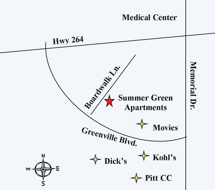 Summer Green Apartments is located at 3150 Boardwalk Ln near the Southwest Greenville area of Greenville, NC