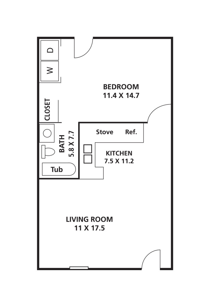 Standard 1 Bedroom - Floorplan 8 Large 1 Bedroom