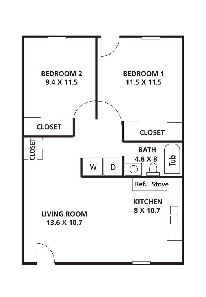 2 Beds, 1 Bath, 800 sq ftAvailable NowModel Gallery