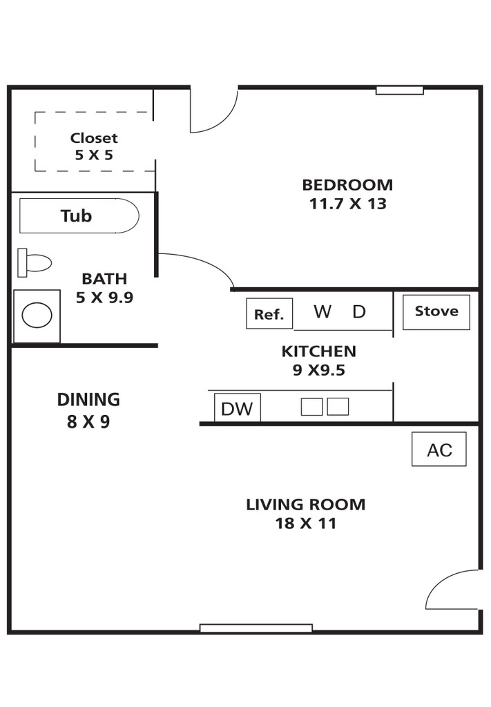 Apartment Model: Large 2 Bedroom$1,1252 Bedroom, 1 Bath, 800 sq ftAvailable NowFloorplansPhotos![]()