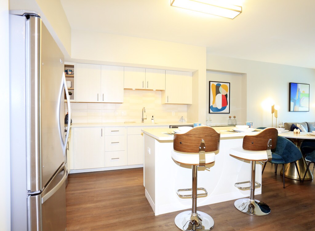 - Gourmet Kitchens with Quartz or Marble Countertops, Custom Solid Wood Cabinetry & Tiled Backsplash