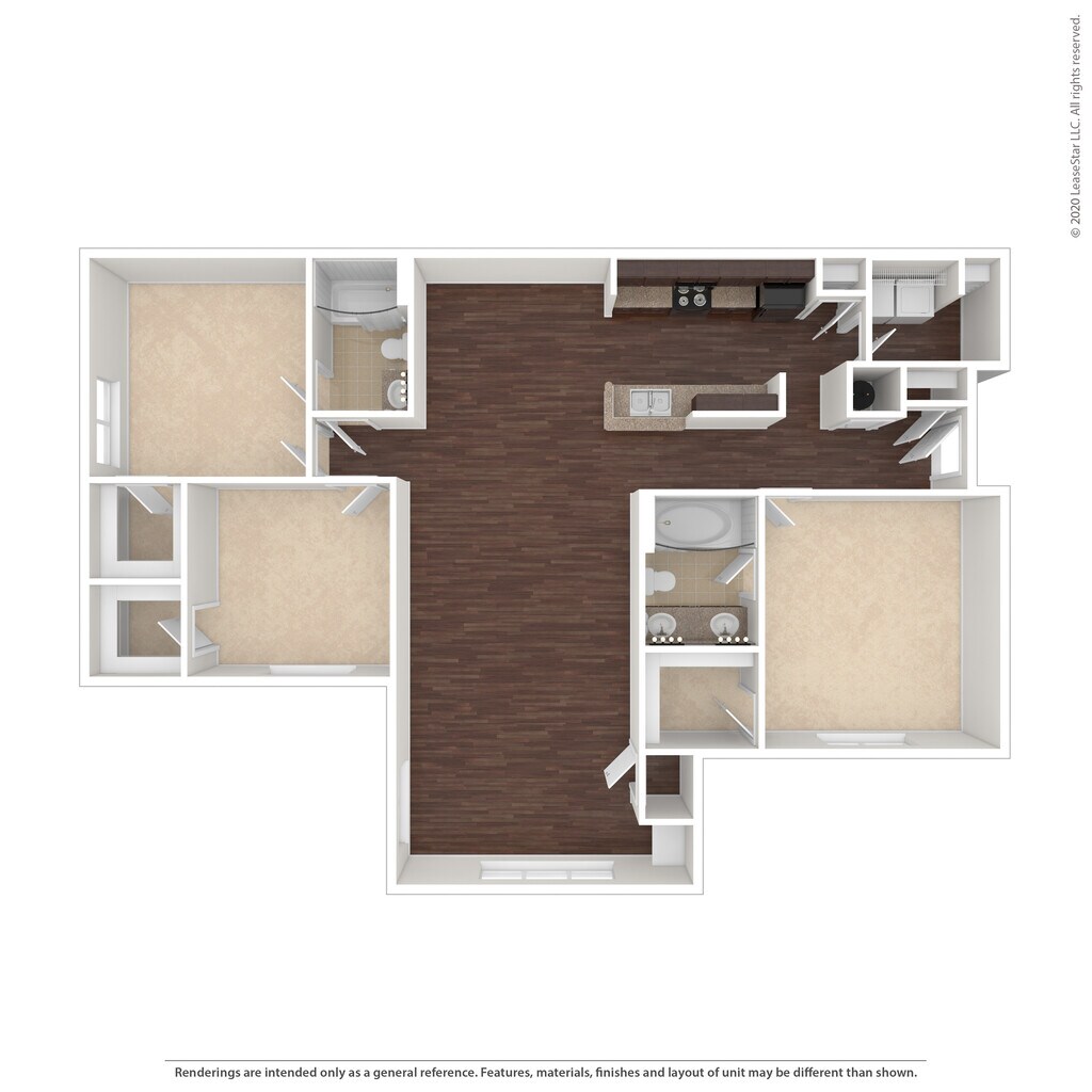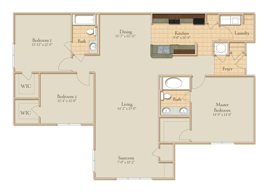 Apartment Model: Three Bedroom Two Bath Deluxe$1,6873 Bedroom, 2 Bath, 1626 sq ftAvailable Now![]()