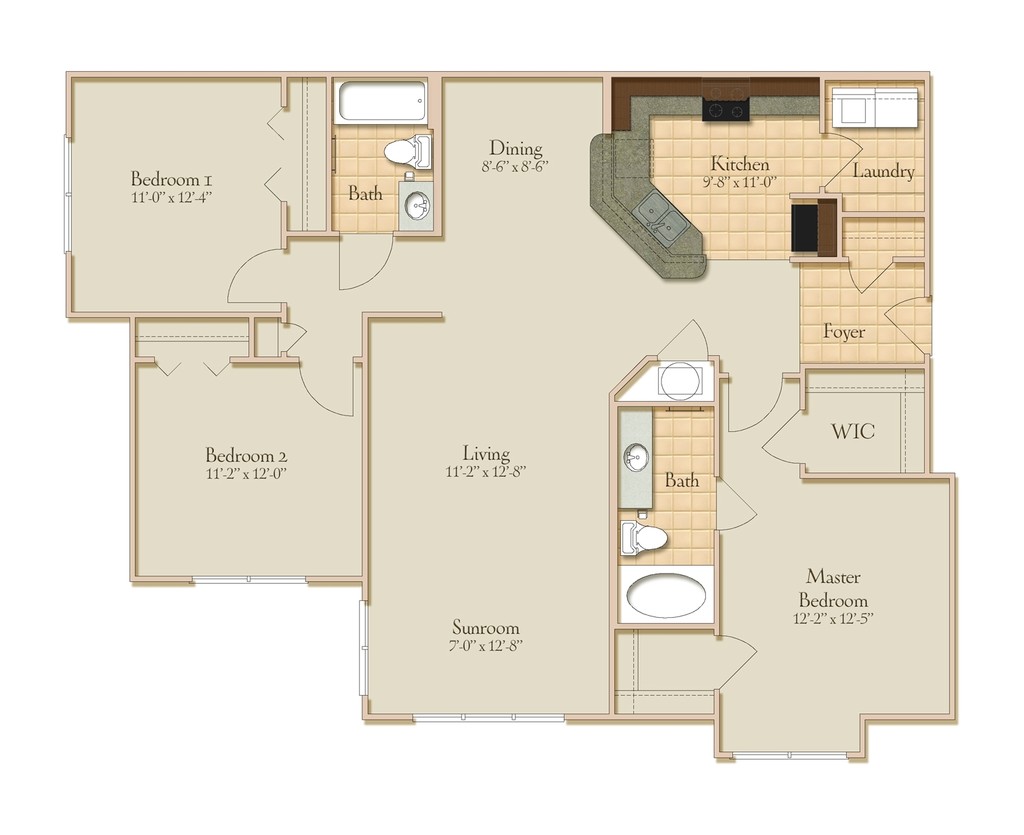 2 Beds, 2 Baths, 1240 sq ftAvailable NowModel Gallery