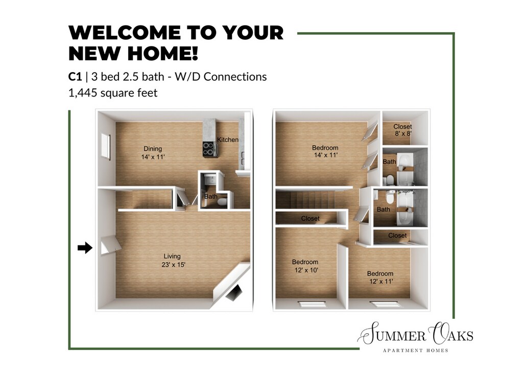 3 Beds, 2.5 Baths, 1445 sq ftAvailable NowModel Gallery