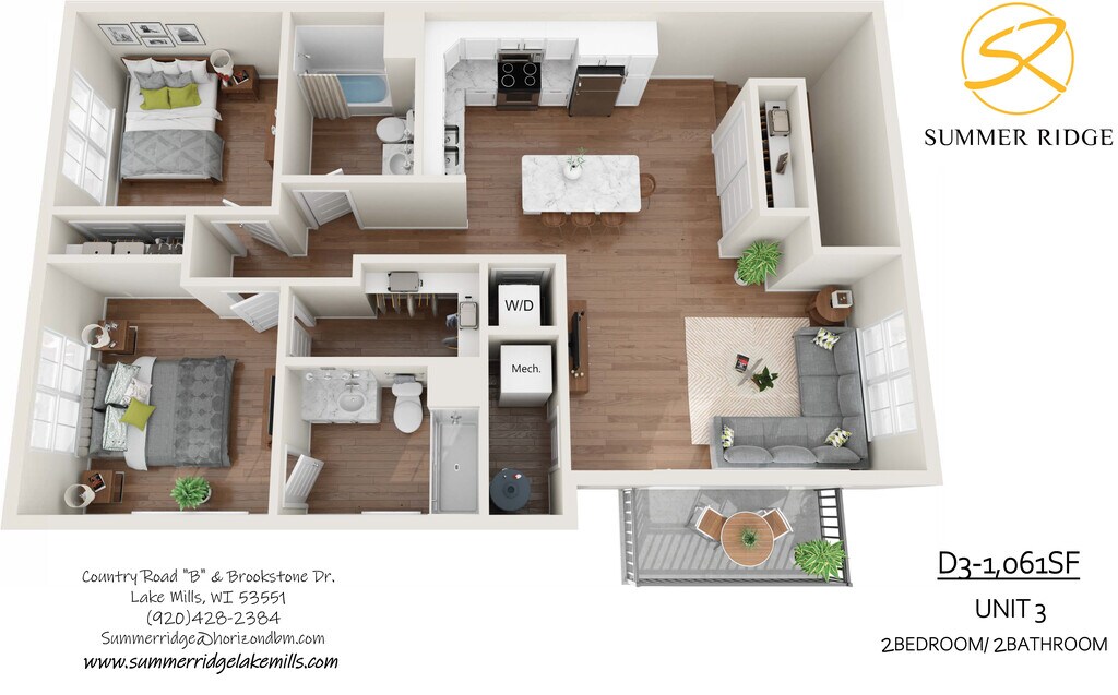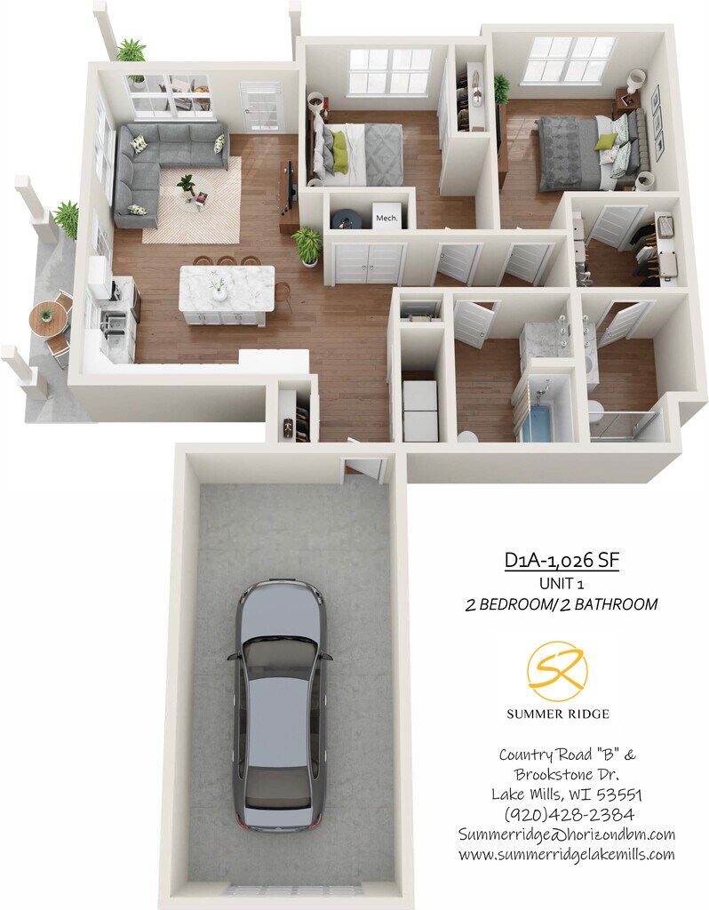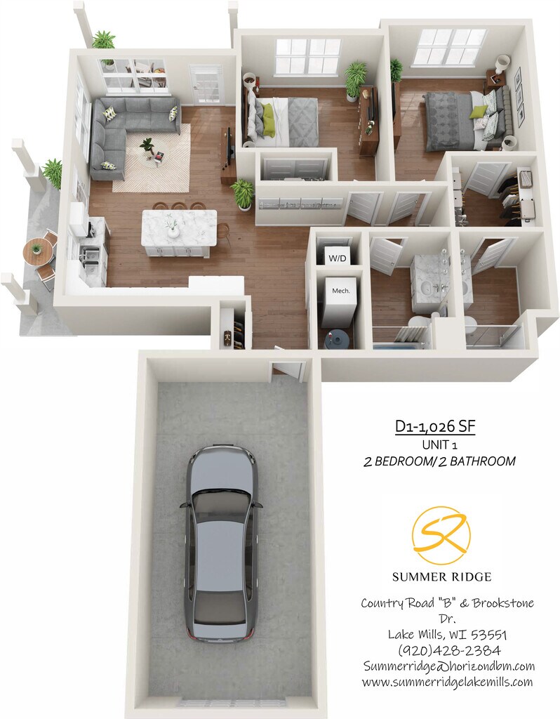 Summer Ridge Apartments is a brand new, luxury townhome-style apartment community that began opening May 2023. Summer Ridge offers well-appointed one-, two-, and three-bedroom apartments boasting stainless-steel appliances, granite countertops, vinyl plank flooring and oversized windows. These features are complimented by a modern color scheme and upgraded finishes throughout. Our townhome-style apartments each have a private entrance, in-unit laundry, attached garage with electric vehicle charging station options and a balcony or patio. Enjoy the expansive green space, a fun-filled playground, and a large dog park just steps outside your front door! Summer Ridge is a non-smoking, pet-friendly (restrictions apply) community near beautiful Rock Lake, the tranquil Glacial Drumlin Trail and downtown Lake Mills - where a variety of cafes, restaurants and shopping is there for your enjoyment. Your dream is waiting at Summer Ridge, where you can enjoy your new home while experiencing all the amenities Lake Mills has to offer; from engaging recreational opportunities to award-winning schools to a charming downtown.