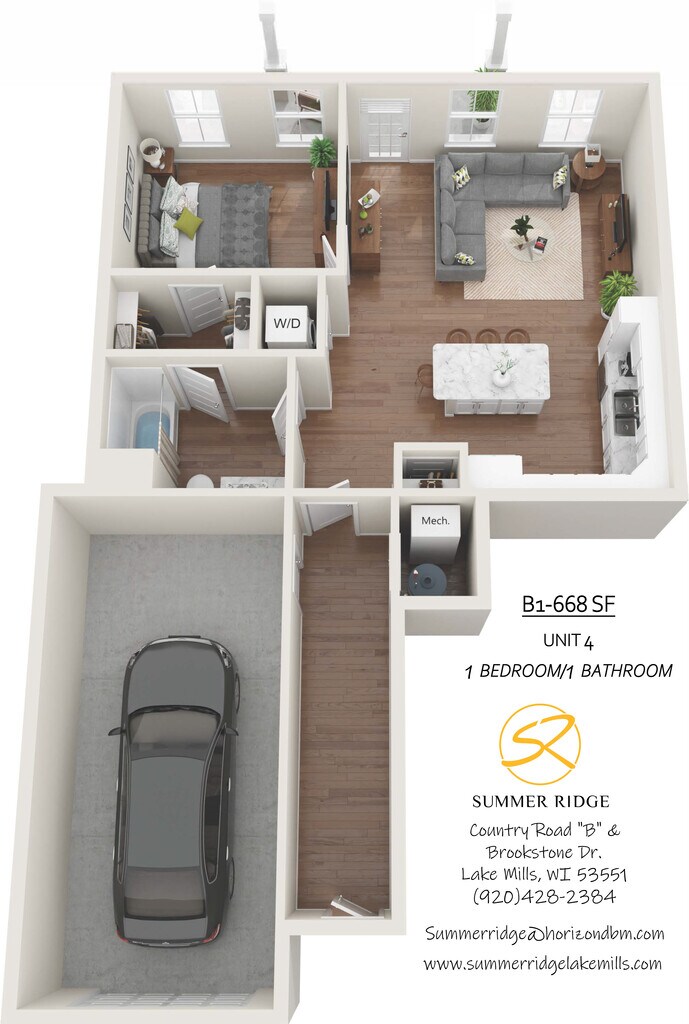 1 Bed, 1 Bath, 668 sq ftModel Gallery