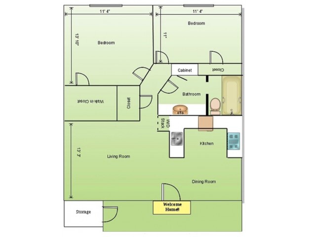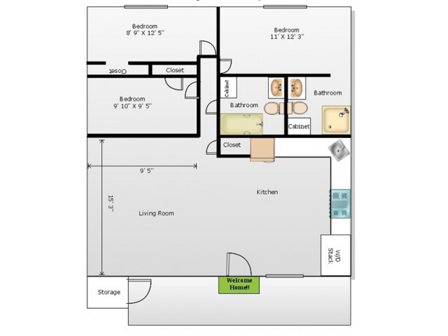 Two Bedroom One Bath - Floorplan 1 3 Bedrooms