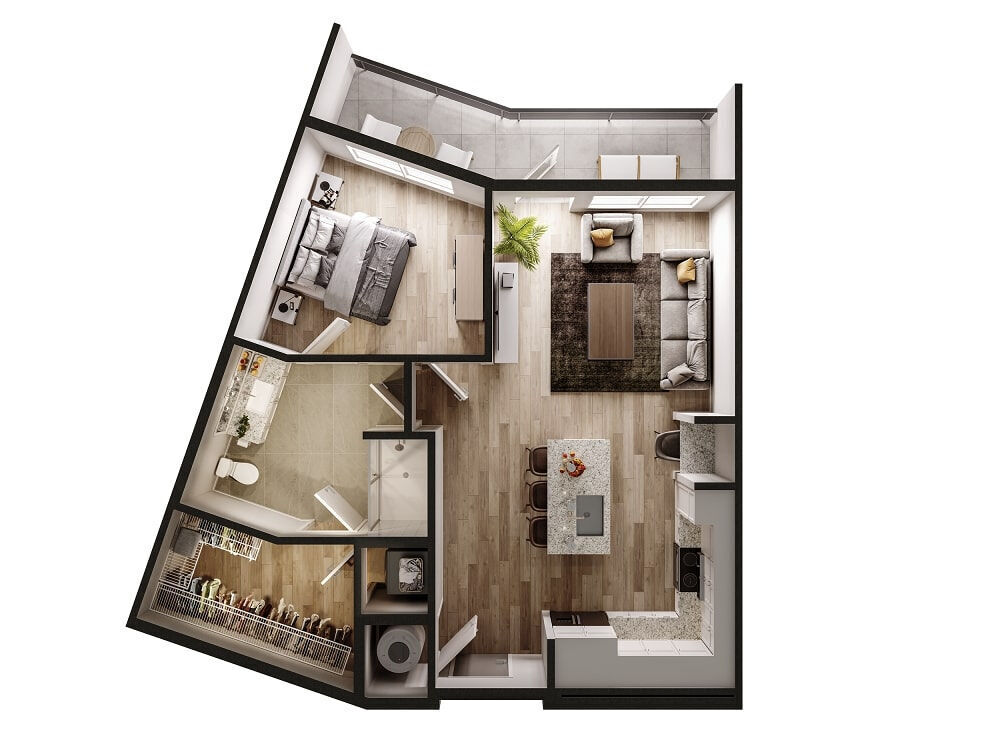 1 Bed, 1 Bath, 777 sq ftModel Gallery