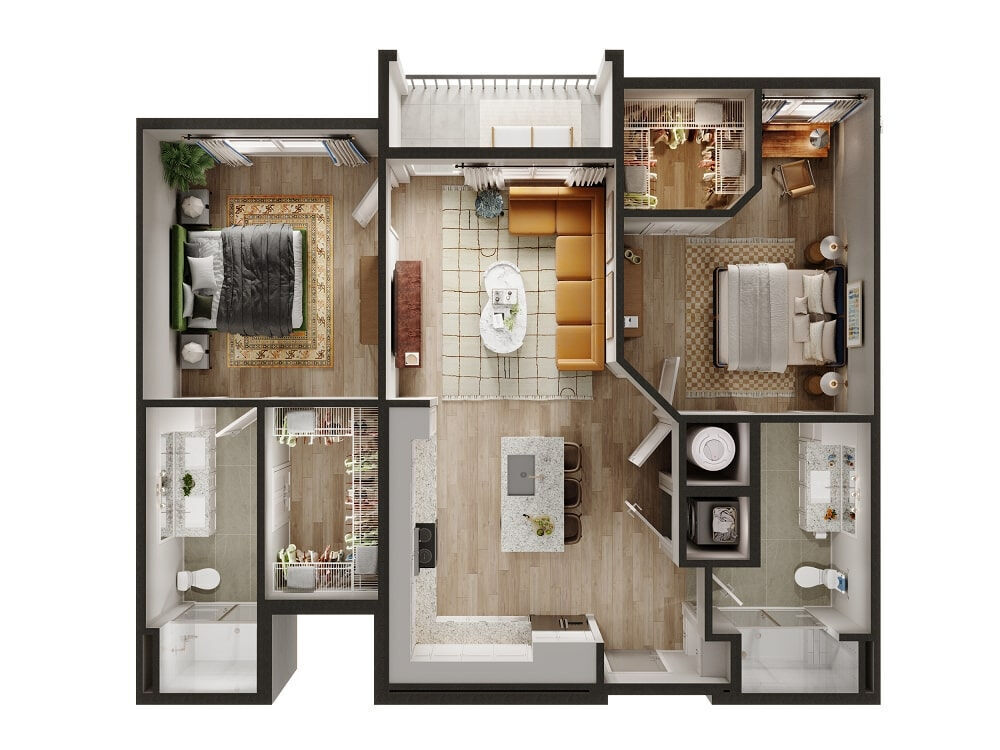 Apartment Model: B4From $2,2002 Bedroom, 2 Bath, 1179 sq ftAvailable NowFloor plans are artist's rendering. All dimensions are approximate. Actual product and specifications may vary in dimension or detail. Not all features are available in every rental home. Prices and availability are subject to change. Base rent is based on monthly frequency. Additional fees may apply, such as but not limited to package delivery, trash, water, amenities, etc. Deposits vary. Please see a representative for details.