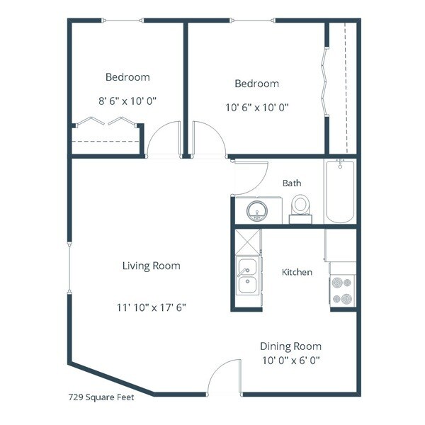 2 Beds, 1 Bath, 729 sq ftAvailable NowModel Gallery