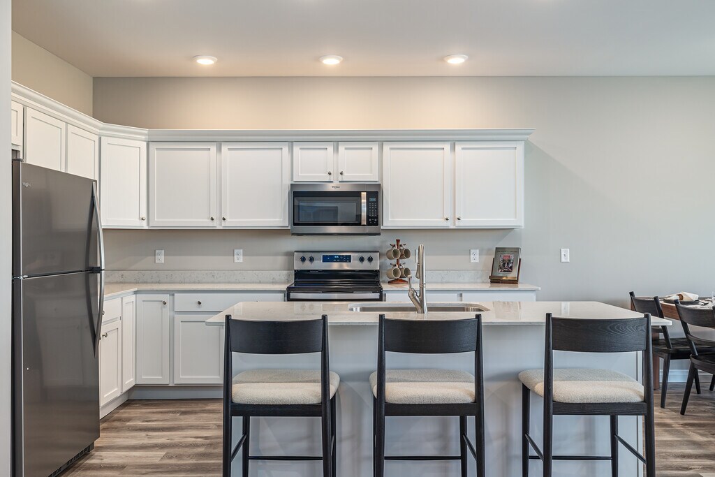 Two-Car Attached Garage Covered Front Porch Open Concept With Soaring Nine Foot Ceilings Expansive Windows Throughout Two Full Bathrooms (Walk-in Shower & Tub/Shower Combo) Island Kitchen with Pantry Quartz Countertops Stainless Steel Appliances White Shaker Cabinets SS Farmhouse Sink Dedicated Dining Area Luxury Vinyl Plank Flooring Private Patio with Sliding Glass Doors Utility Room with Washer/Dryer Included Pet Friendly with Some Restrictions